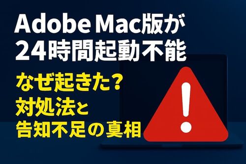 2025年11月18日、AdobeのMac版アプリが突然起動不能に。24時間も使えなかった原因は?なぜMacだけ?実際に効果があった対処法から、ユーザーが激怒した告知不足の実態、クリエイター業界への影響、今後の備えまで詳しく解説。代替ソフトの情報も紹介します。