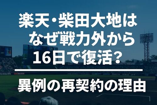 楽天・柴田大地投手が戦力外通告からわずか16日後に支配下契約で再契約。なぜこんな異例の復活が?一軍では防御率2.08の好成績も二軍では課題。編成と現場のズレ説や楽天の現役ドラフト3年連続戦力外というジンクスなど、背景を詳しく解説します。